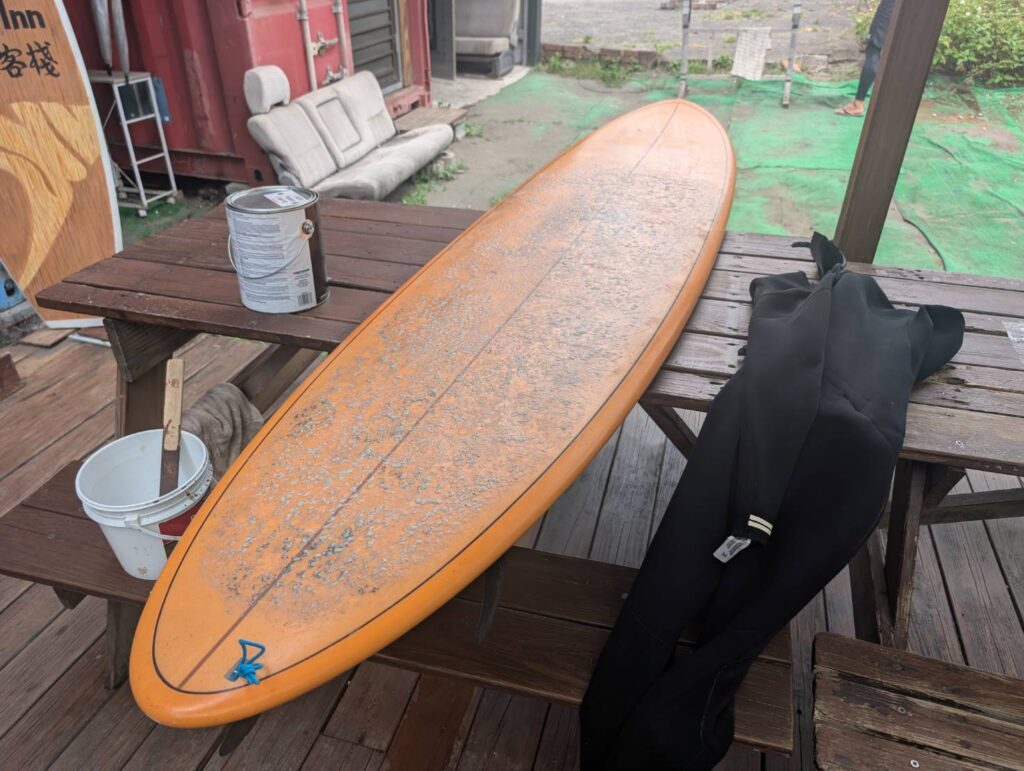 明日も海にいくことができそうで、打って変わって満潮から下がってき始めくらいのタイミングを狙ってみようかと思っています。波次第ですがボリューム落としたミッドレングス乗ってみようかと。