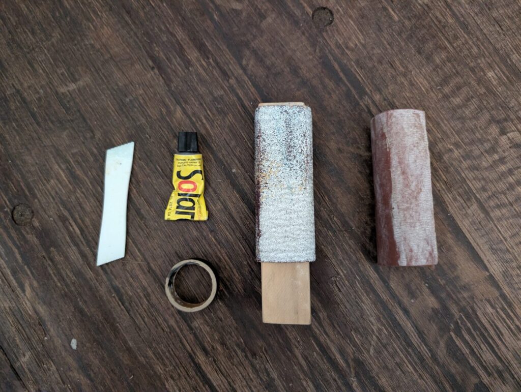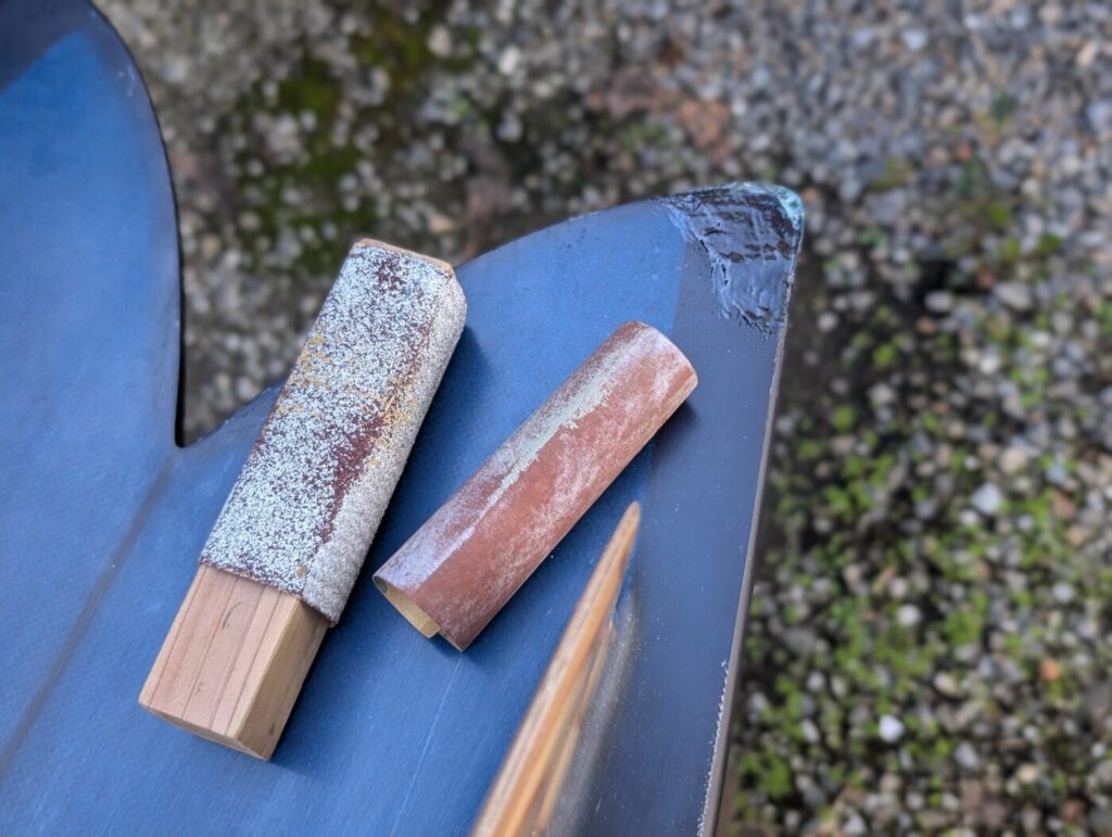 大まかに削る「粗目(今回は80番)」と、仕上げ用の「細目(今回は400番の耐水ペーパー)」の2種類は必要です(800番、1200番と更に細目もあるとなお良いです)
