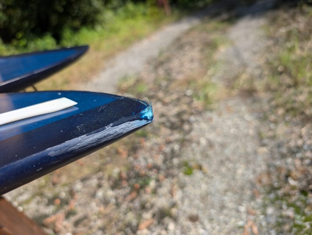 先日ゲットしたサーフボードのテールのクラックをSolarez(ソーラーレズ)で自分でリペアしました。