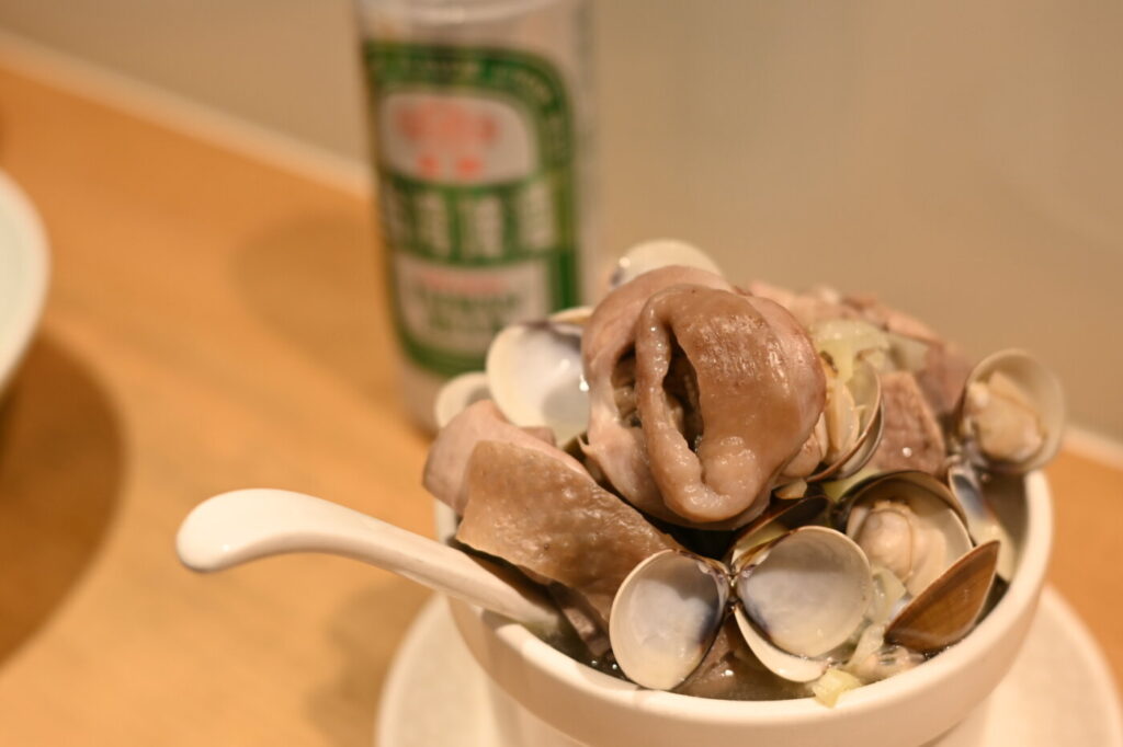 驚いたのが、名物の「蛤蜊燉雞腿湯 / ハマグリ入り地鶏スープ」