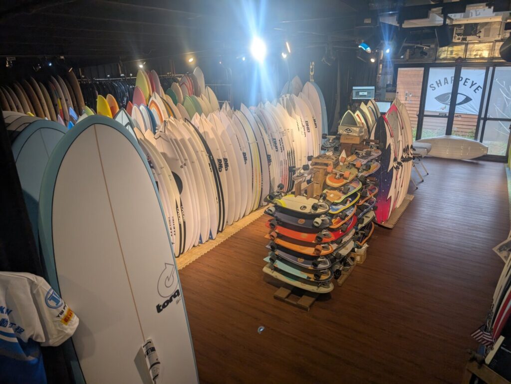 ショップ内には販売用の新品ボードも多数展示されていました。